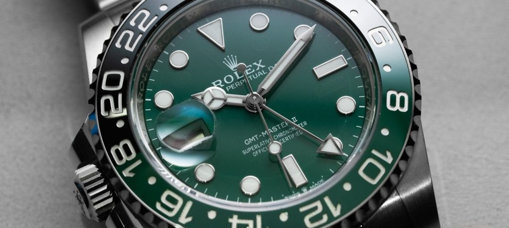What about that green Cerachrom dial in the left-handed white gold 1:1 copy Rolex GMT-Master II watches “Sprite?”